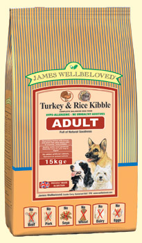Wholesome, natural hypo-allergenic dog food. Helps loose bowels and calms itchy, irritated skin and coat. As a white meat turkey is full of goodness and is very gentle on the digestive tract. Turkey is a better white meat choice than chicken for a hypo-allergenic food because some dogs are known to have already developed a chicken hypersensitivity. A sensitivity to turkey is less likely because turkey is not used as much in pet food, so dogs will not have been over-exposed to it.